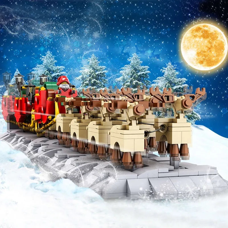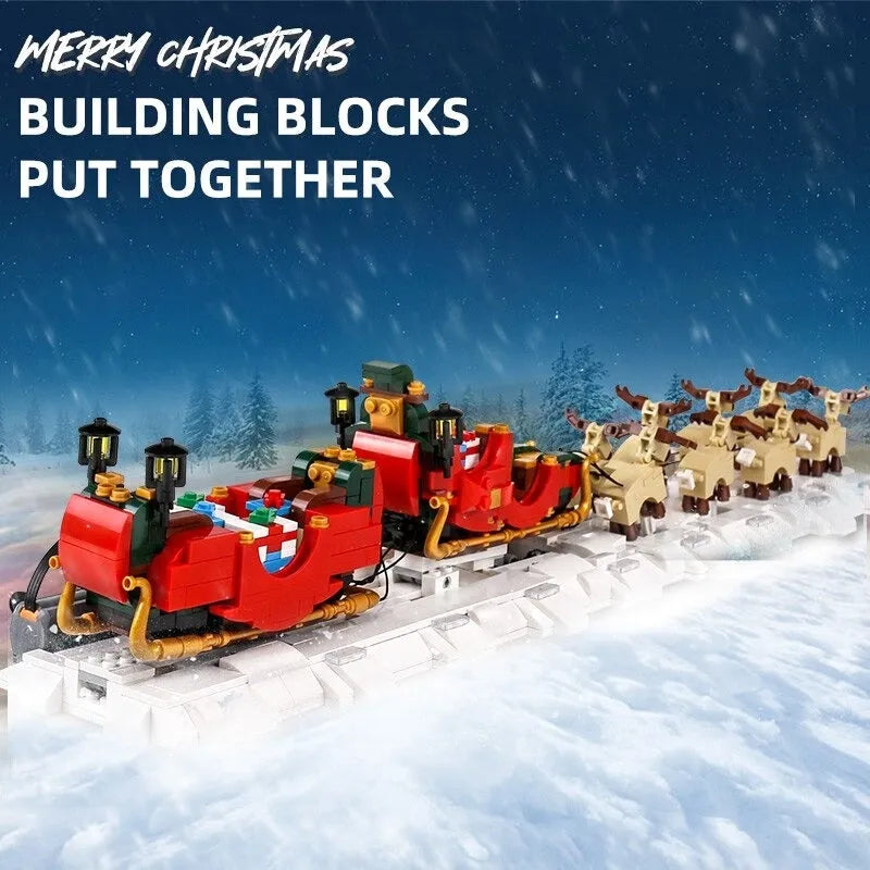 Building Blocks Motorized Santa Claus Sleigh Elk Bricks Toy
