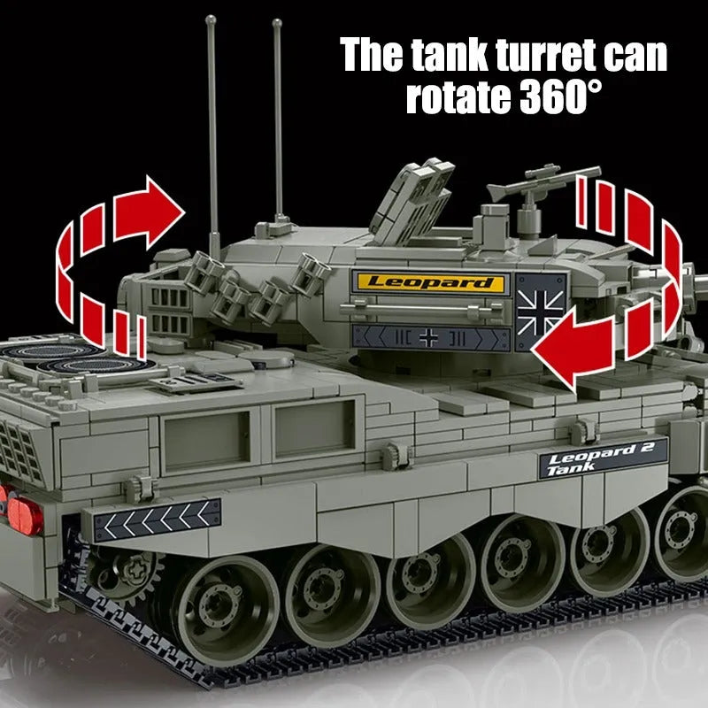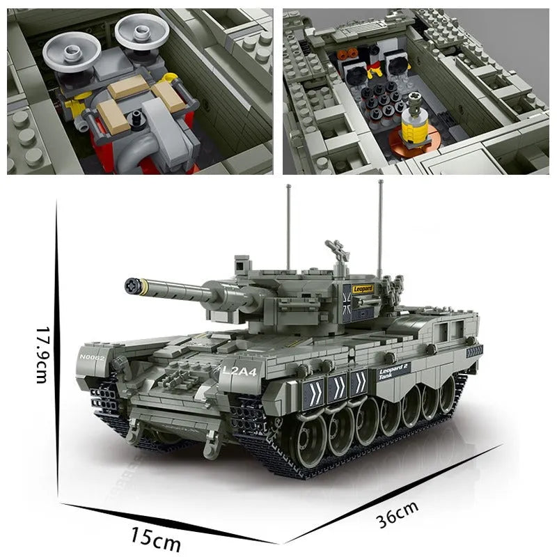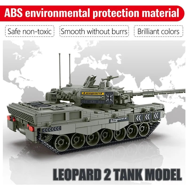 MOC Military WW2 Leopard 2A4 Battle Tank Bricks Toys