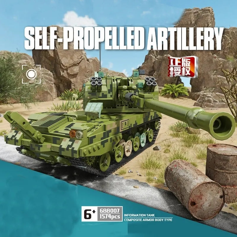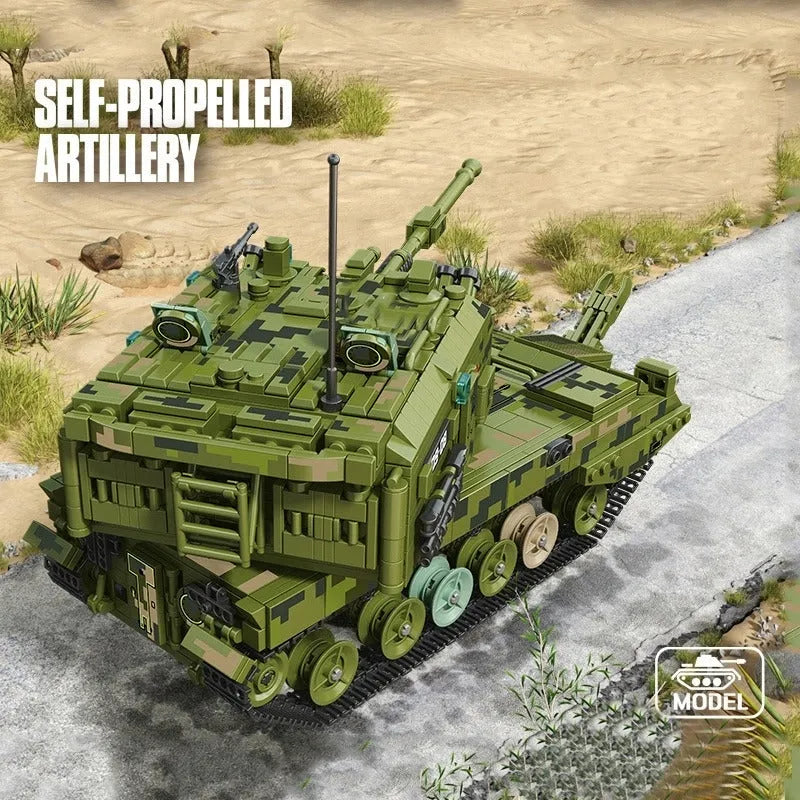 MOC WW2 Military 155 Self-Propelled Artillery Kids Toys
