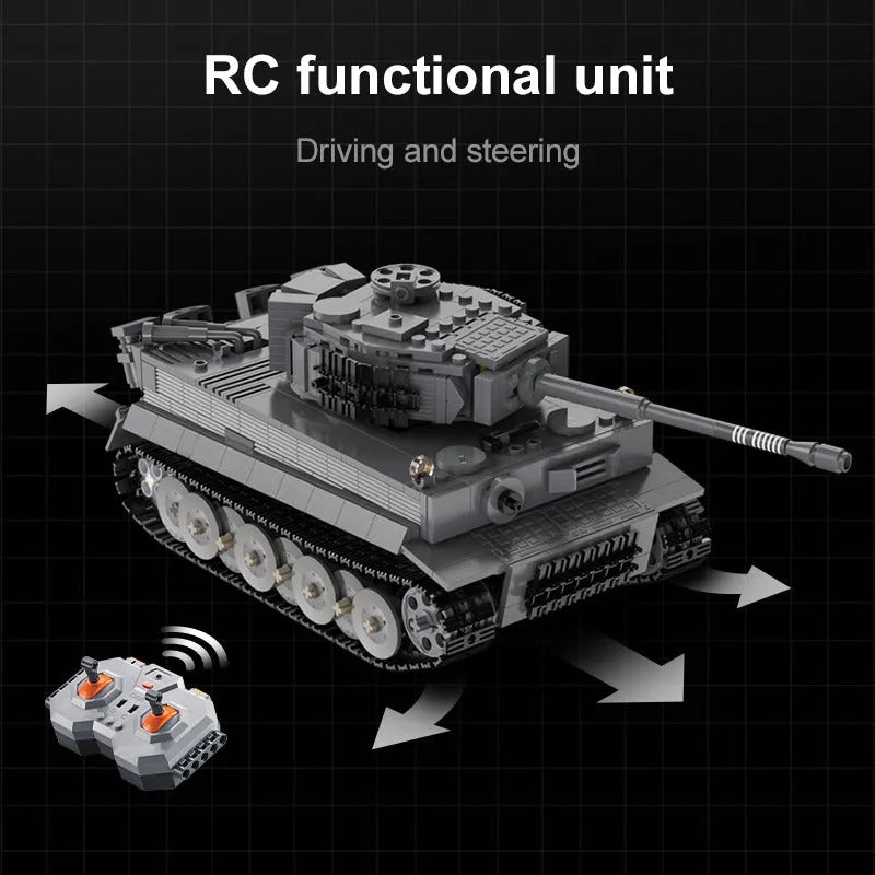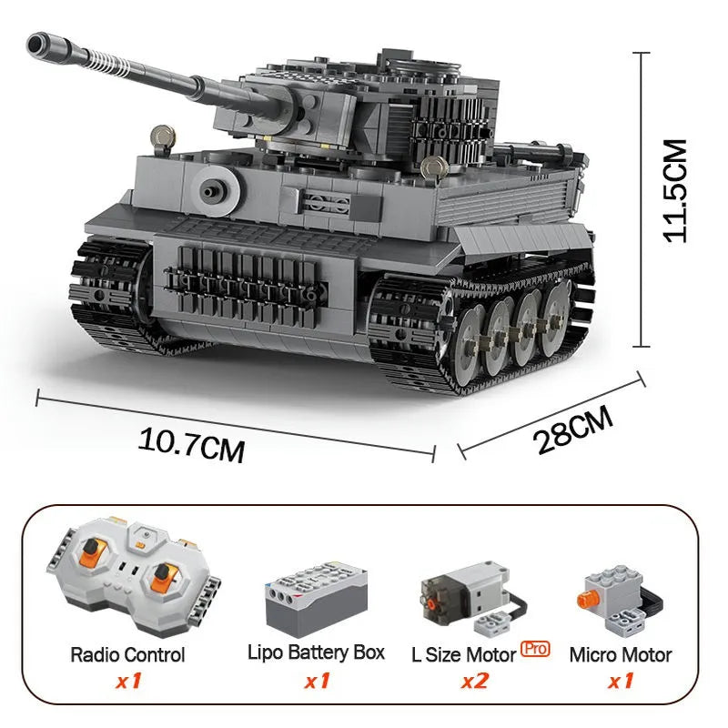 MOC WW2 Motorized RC Tiger Battle Tank Bricks Toy