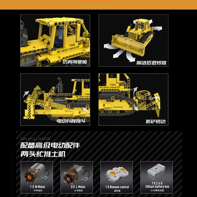Tech MOC APP Bulldozer RC Caterpillar D8K Bricks Toy 17024