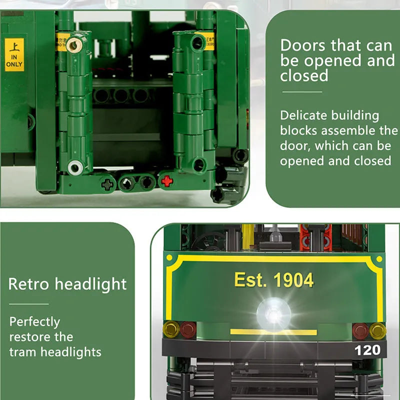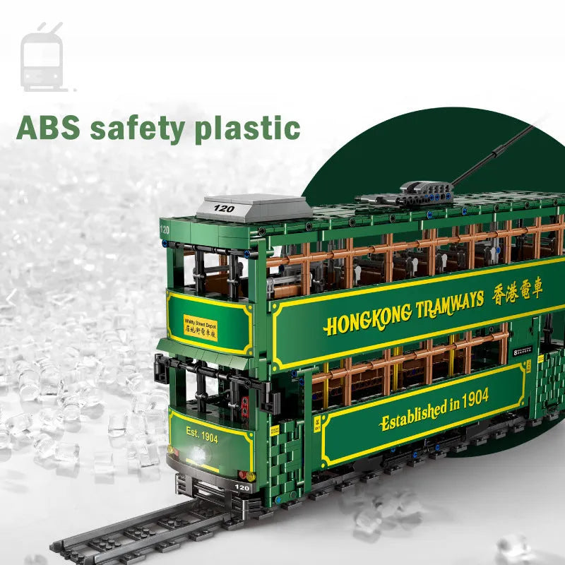 Tech MOC KB120 RC Hong Kong Tramways Train Bricks Toy